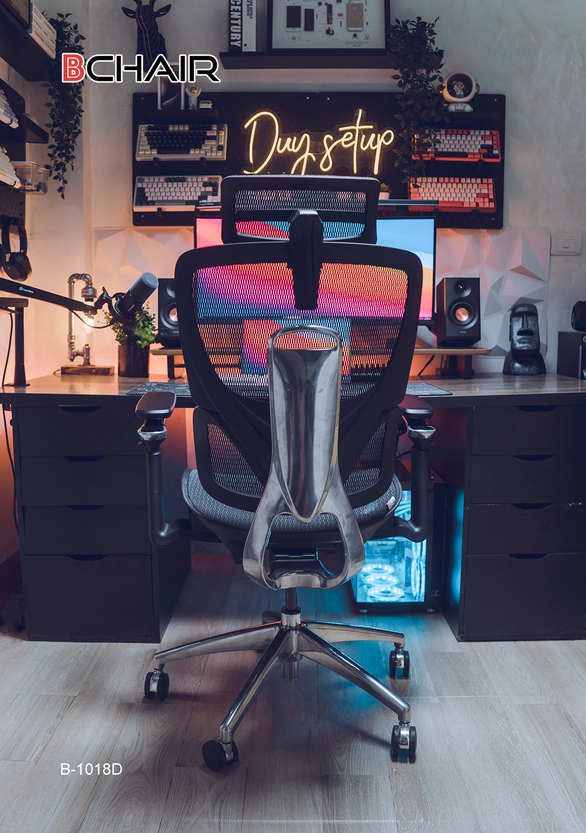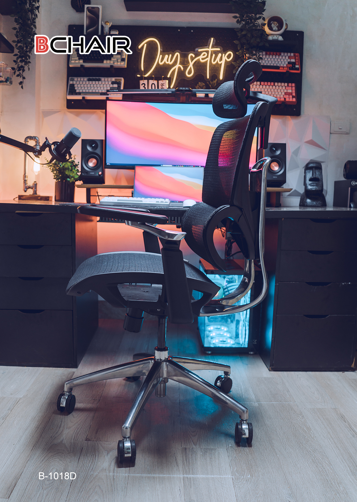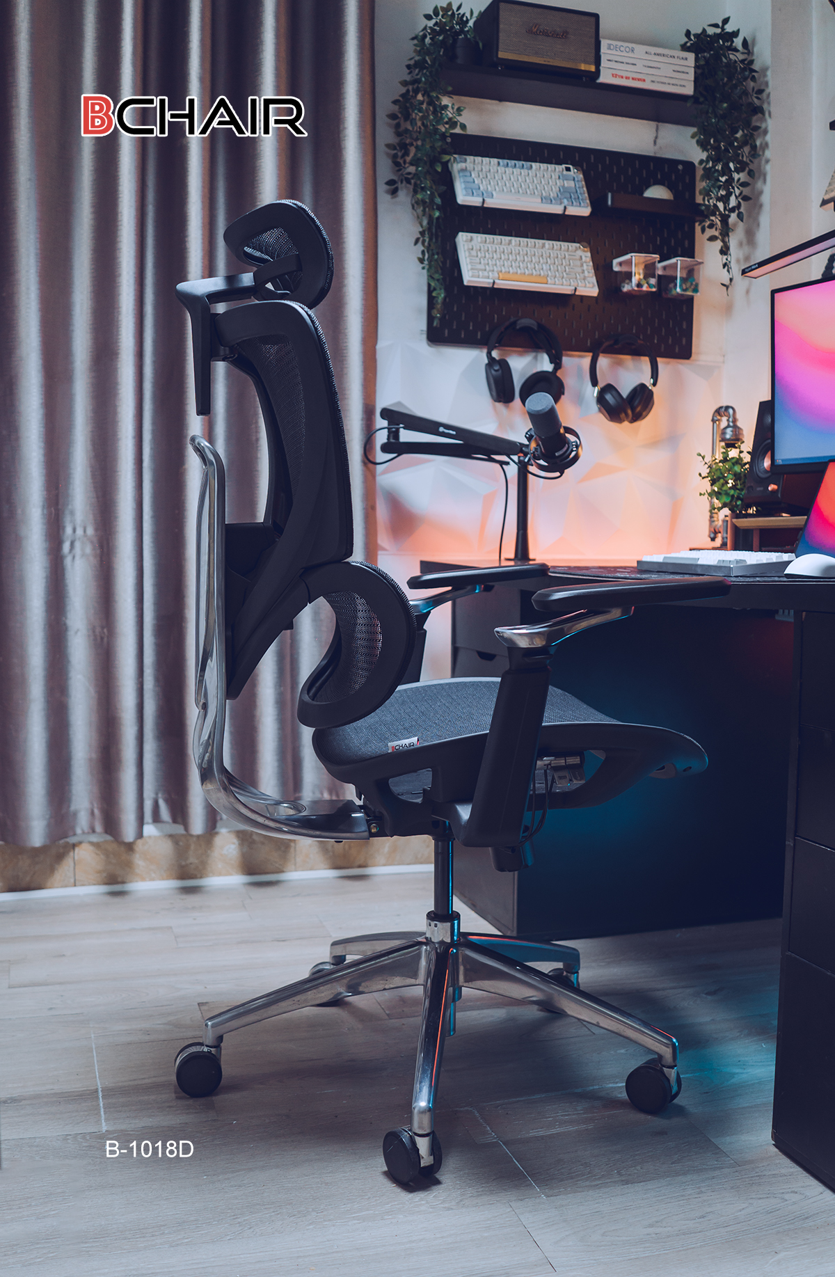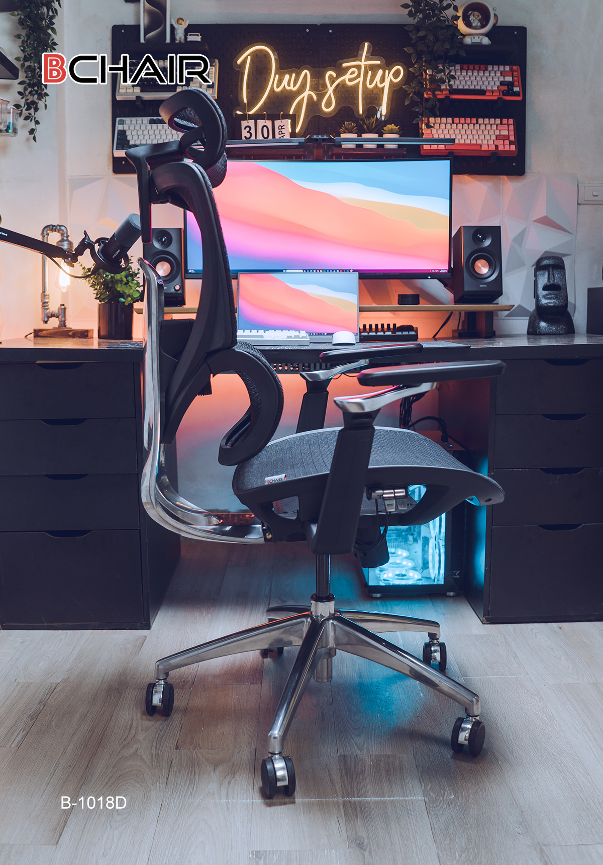 Ghế công thái học có nhiều để lựa chọn, mình chọn màu đen và model B-1018D nhìn rất sang trọng và chuyên nghiệp.