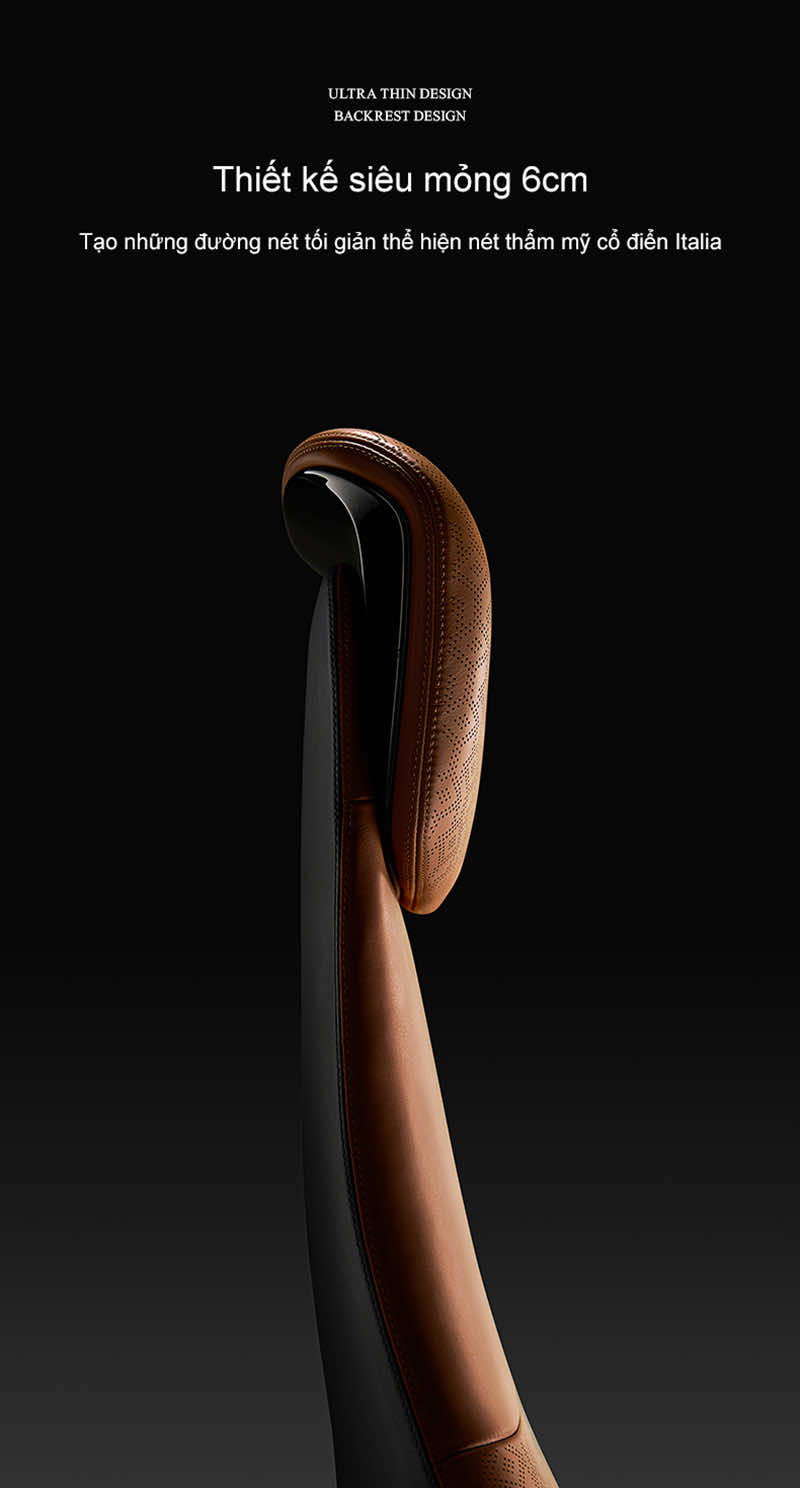 | Công thái học vượt trội | Ghế được thiết kế dựa trên nghiên cứu về cơ thể người, hỗ trợ đường cong tự nhiên của cột sống, giảm áp lực lên các vùng nhạy cảm. | Giảm đau mỏi lưng, cổ, vai gáy, nâng cao sức khỏe và sự tập trung khi làm việc. |