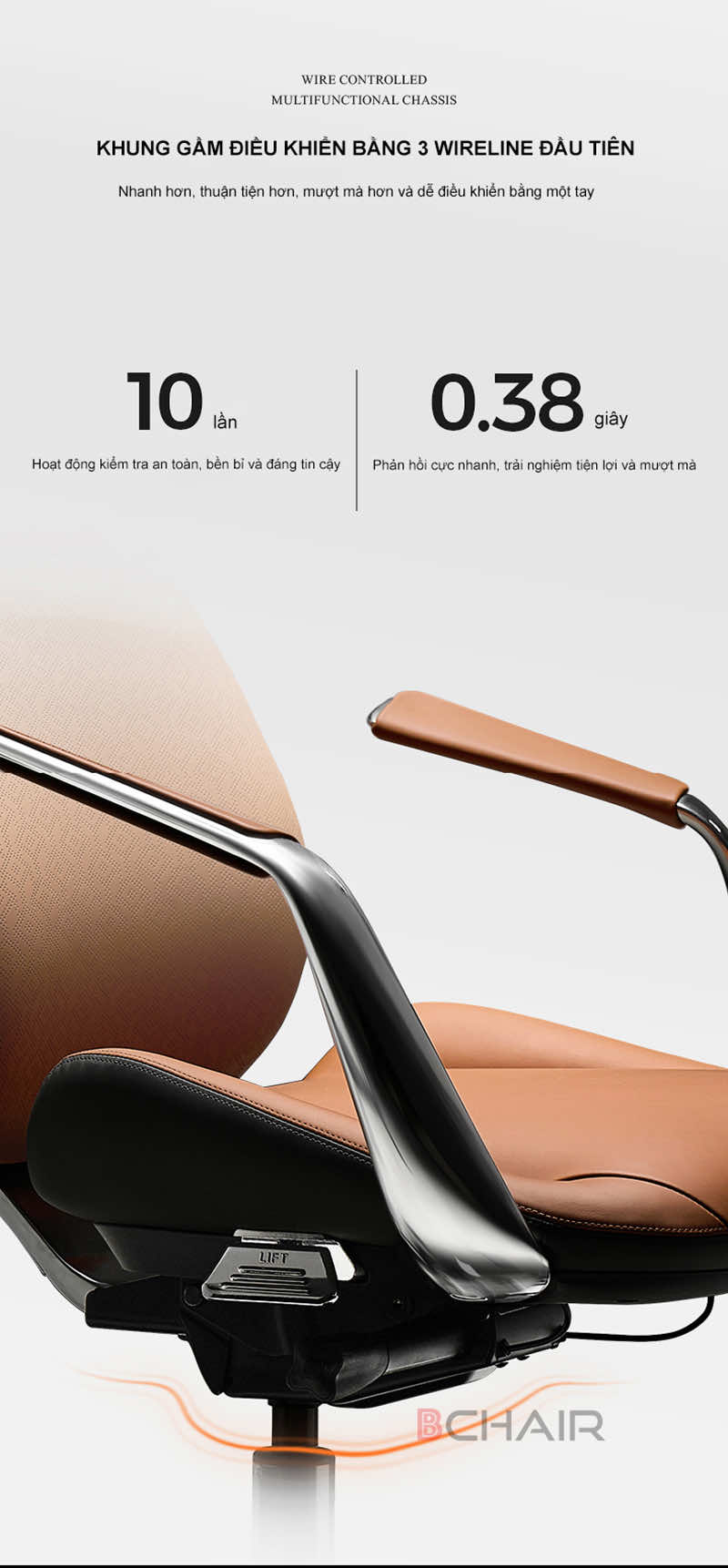 | Thiết kế sang trọng, đẳng cấp | Ghế giám đốc Bchair có kiểu dáng hiện đại, đường nét tinh tế, chất liệu cao cấp, mang đến vẻ đẹp sang trọng và chuyên nghiệp cho không gian làm việc. | Tạo ấn tượng mạnh mẽ, thể hiện vị thế và đẳng cấp của người lãnh đạo. |