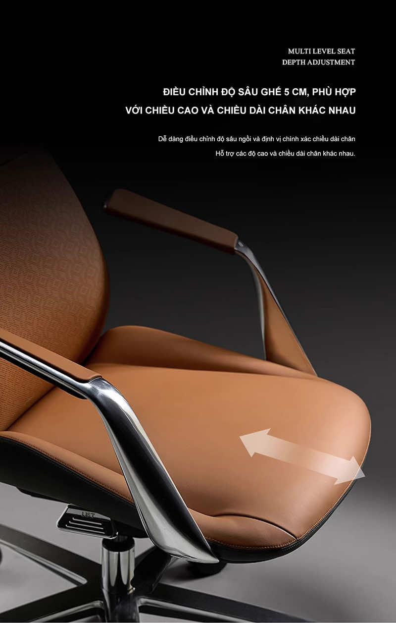| Chất liệu cao cấp, bền bỉ | Ghế được làm từ các vật liệu chất lượng cao như da thật, lưới thoáng khí, mút đệm êm ái, khung thép chắc chắn. | Đảm bảo độ bền và tuổi thọ sản phẩm, mang lại trải nghiệm sử dụng thoải mái và an toàn. |