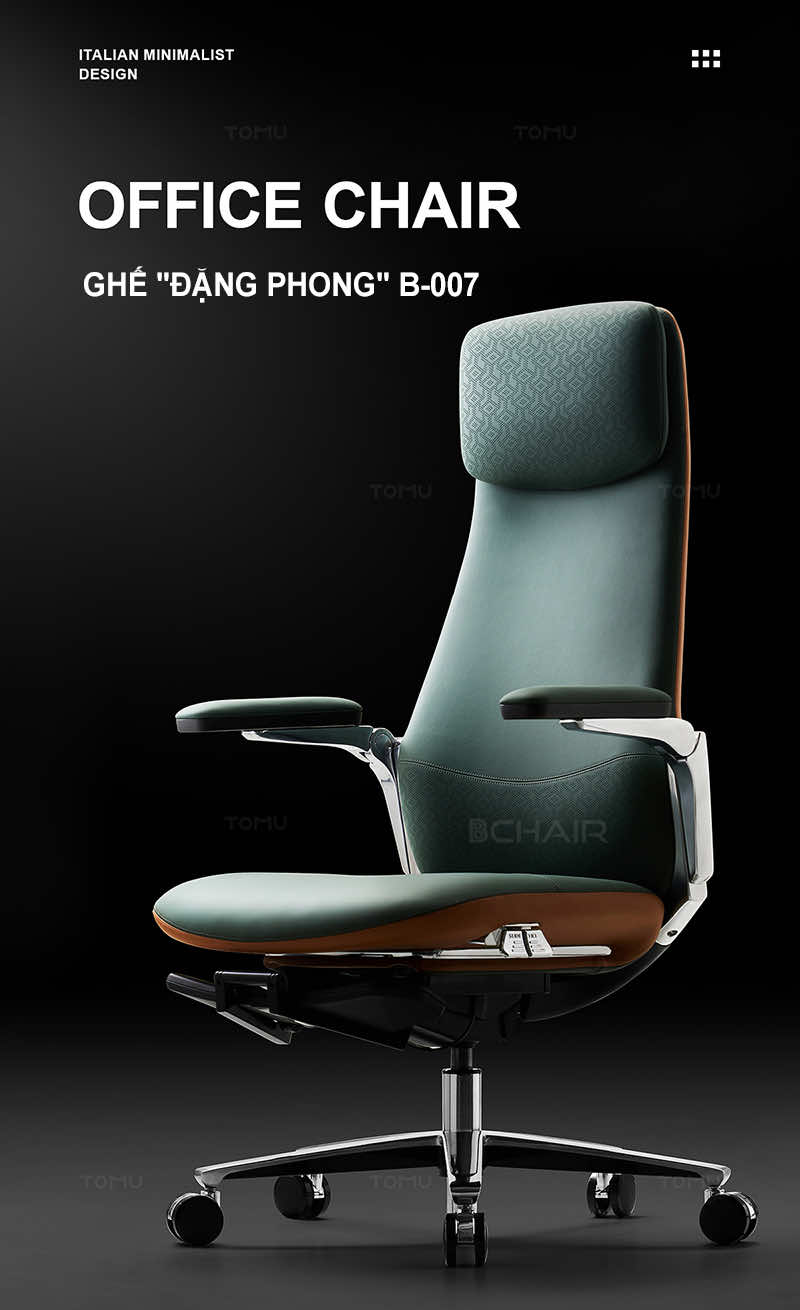 Ghế giám đốc “Đặng Phong” B-007AF-35L của thương hiệu Bchair không chỉ là một chiếc ghế, mà còn là biểu tượng của sự tinh tế, quyền lực và gu thẩm mỹ vượt trội. Với màu xanh độc đáo, chất liệu da bò Nappa cao cấp và thiết kế đỉnh cao, mẫu ghế này mang đến trải nghiệm hoàn hảo cả về hình thức lẫn tính năng.