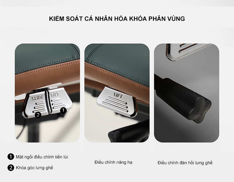 | Tính năng thông minh, tiện lợi | Ghế có thể điều chỉnh độ cao, độ nghiêng, tựa lưng, tựa đầu, tay vịn… để phù hợp với nhu cầu sử dụng của từng người. | Tạo sự thoải mái tối đa, phù hợp với nhiều đối tượng sử dụng và không gian làm việc khác nhau. |